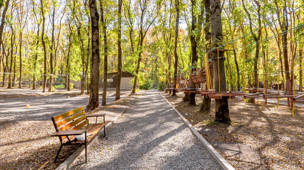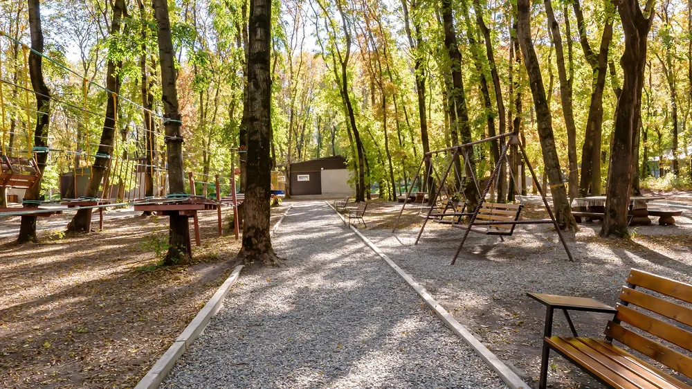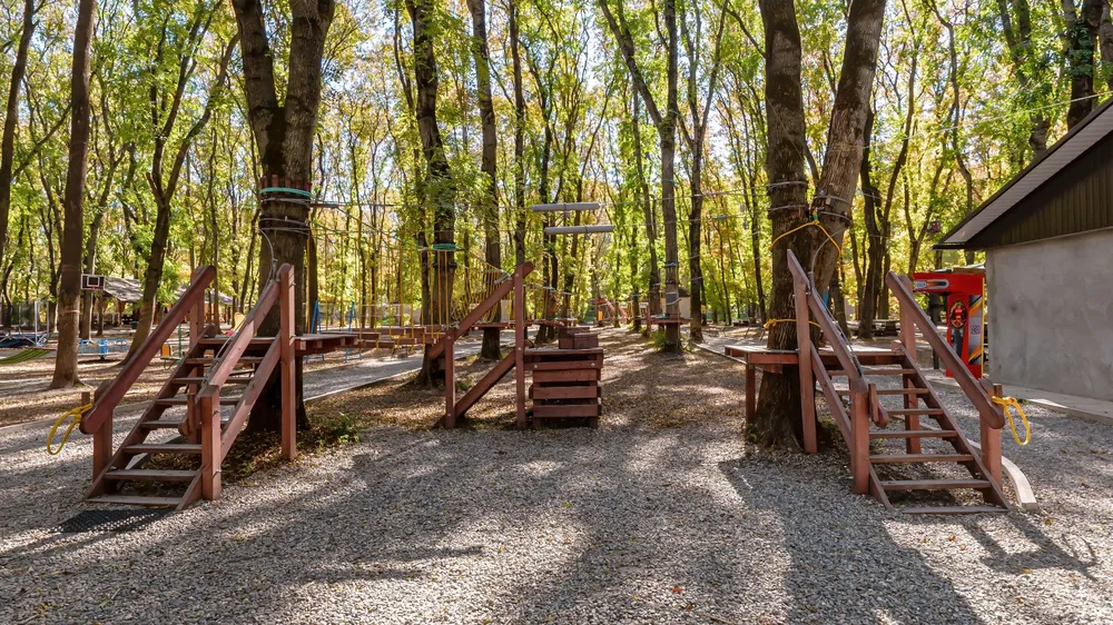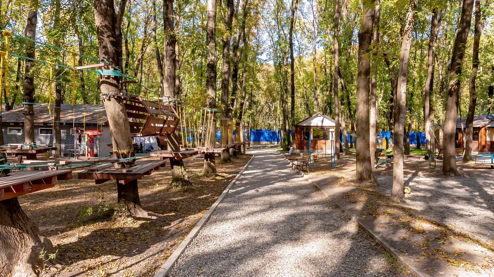 Верёвочный парк, лазертаг, спортивные площадки, кинотеатр и многое другое.