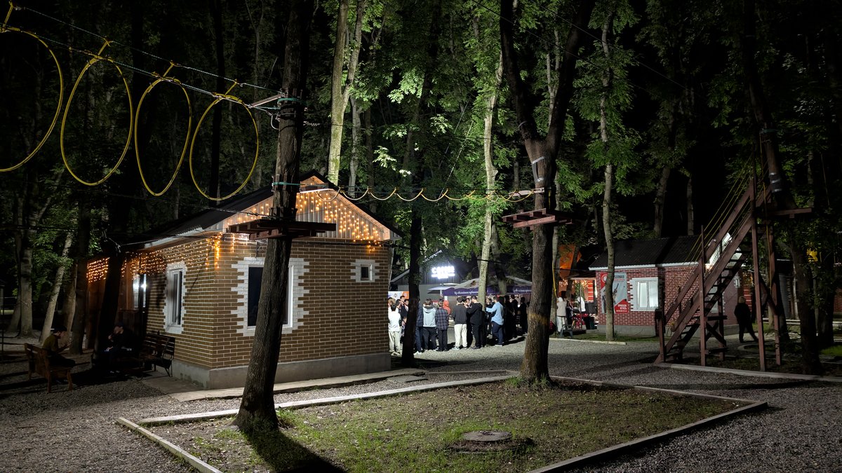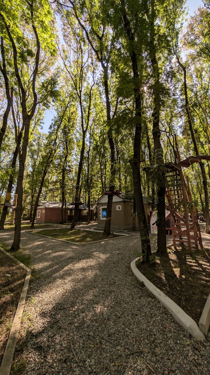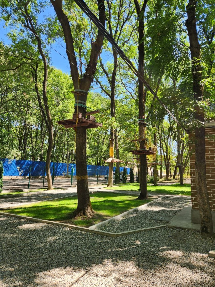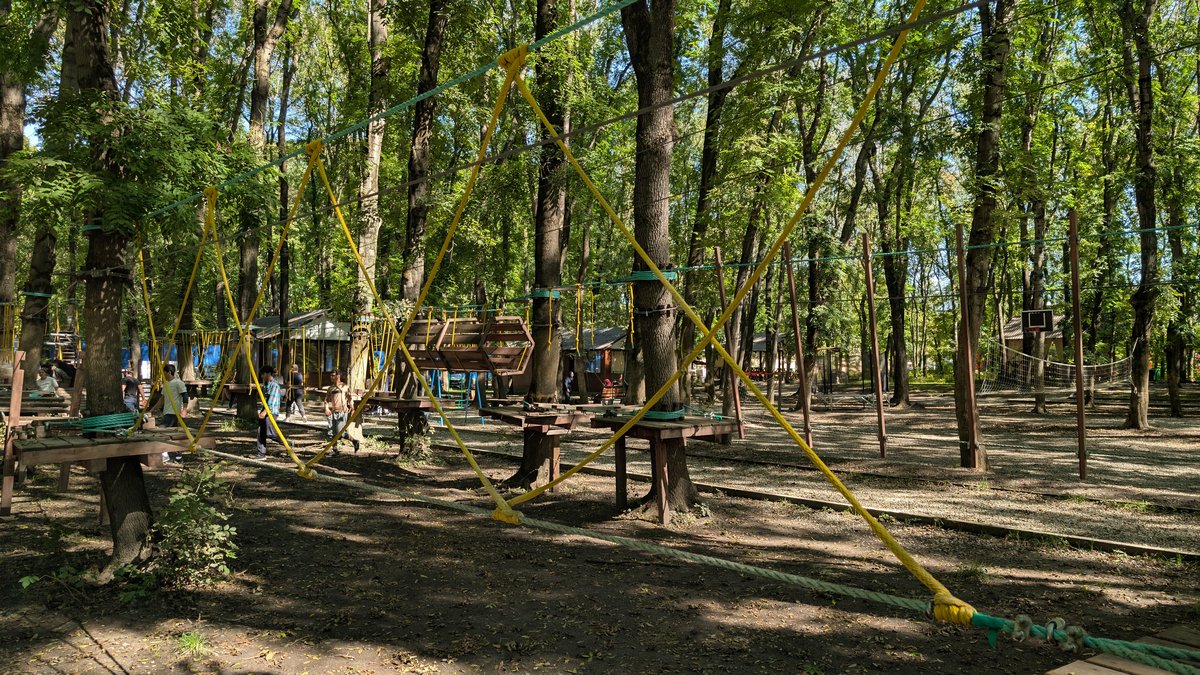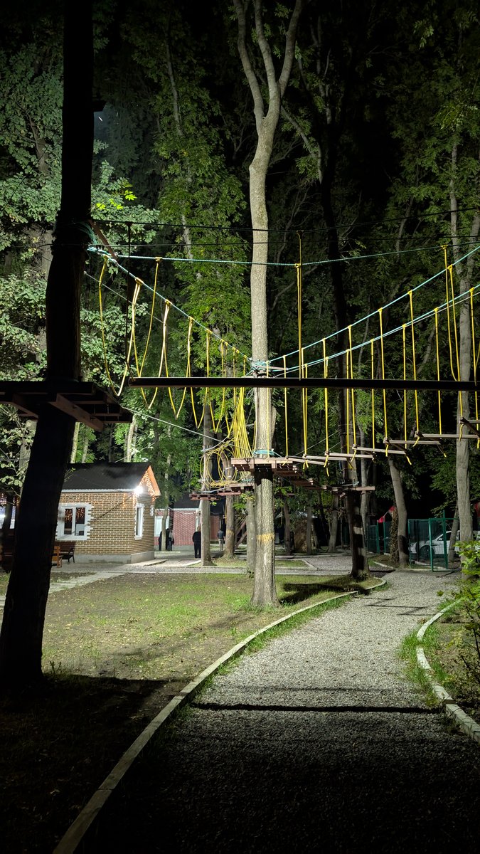 Веревочный парк, лазертаг, кинотеатр, спортивные площадки.