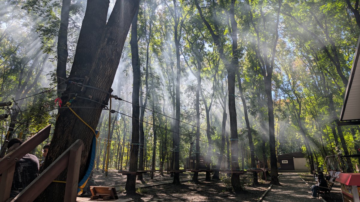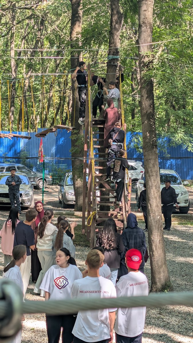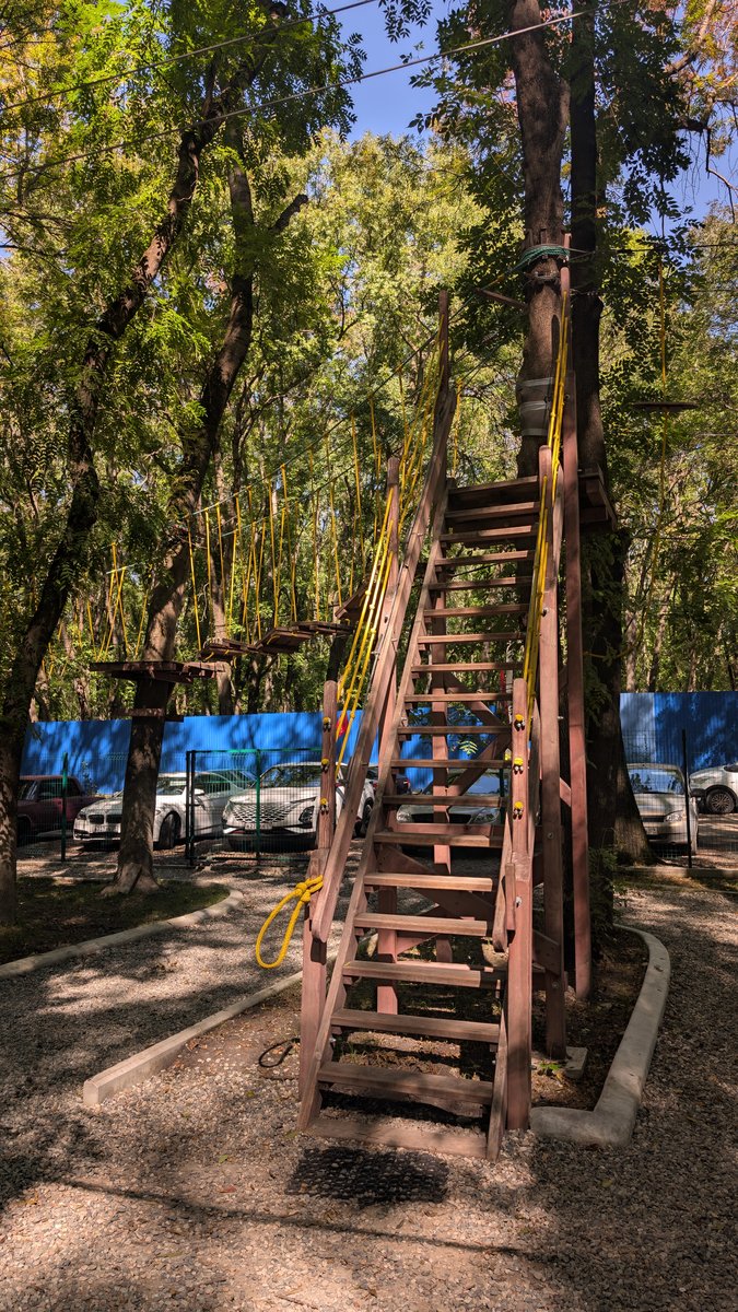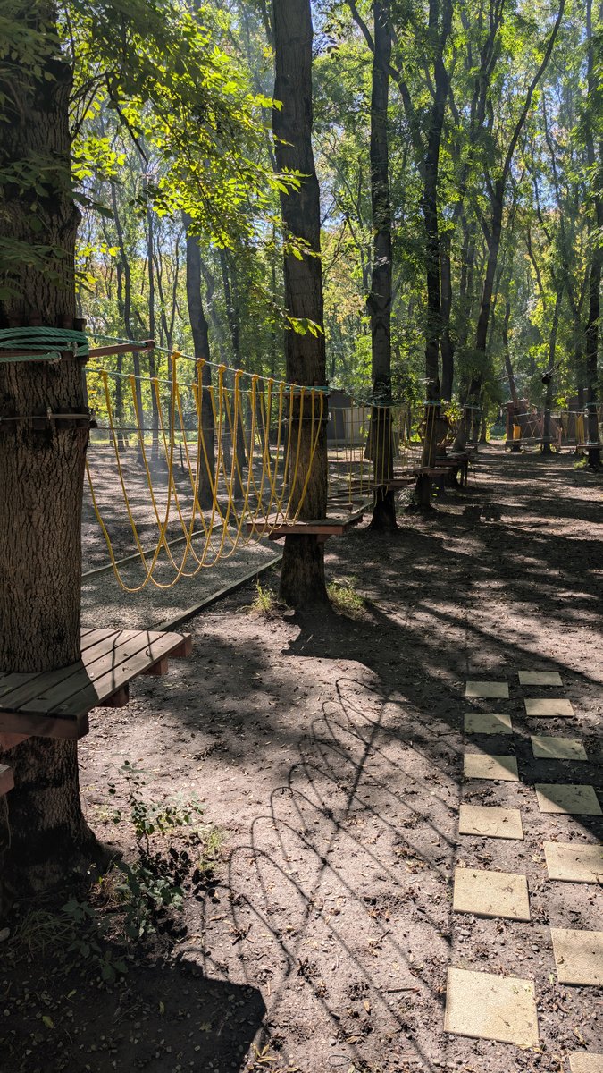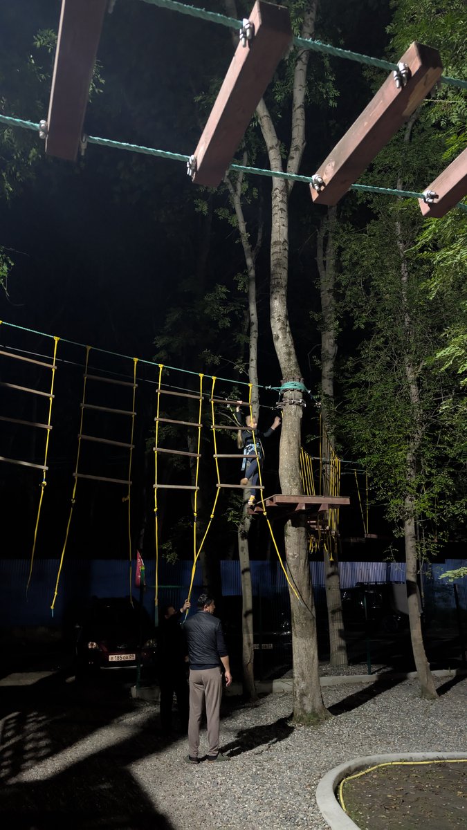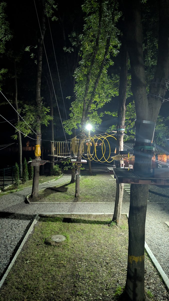 Веревочный парк, лазертаг, кинотеатр, спортивные площадки.