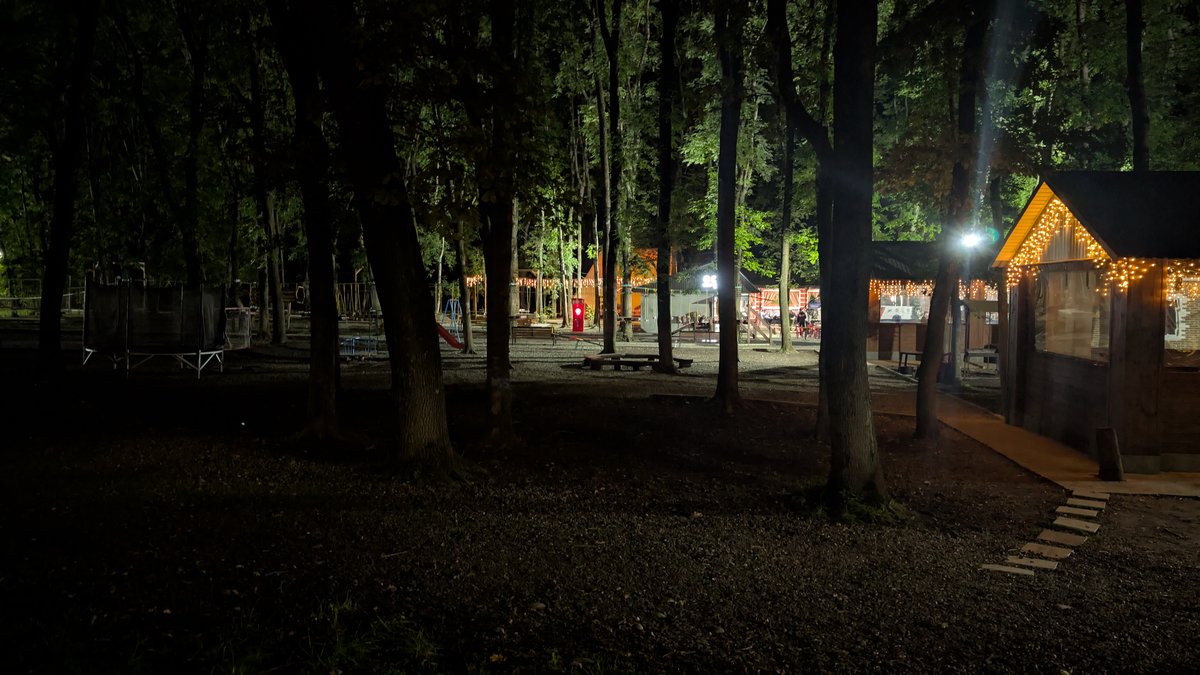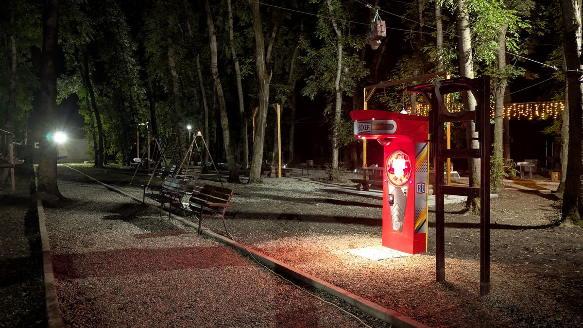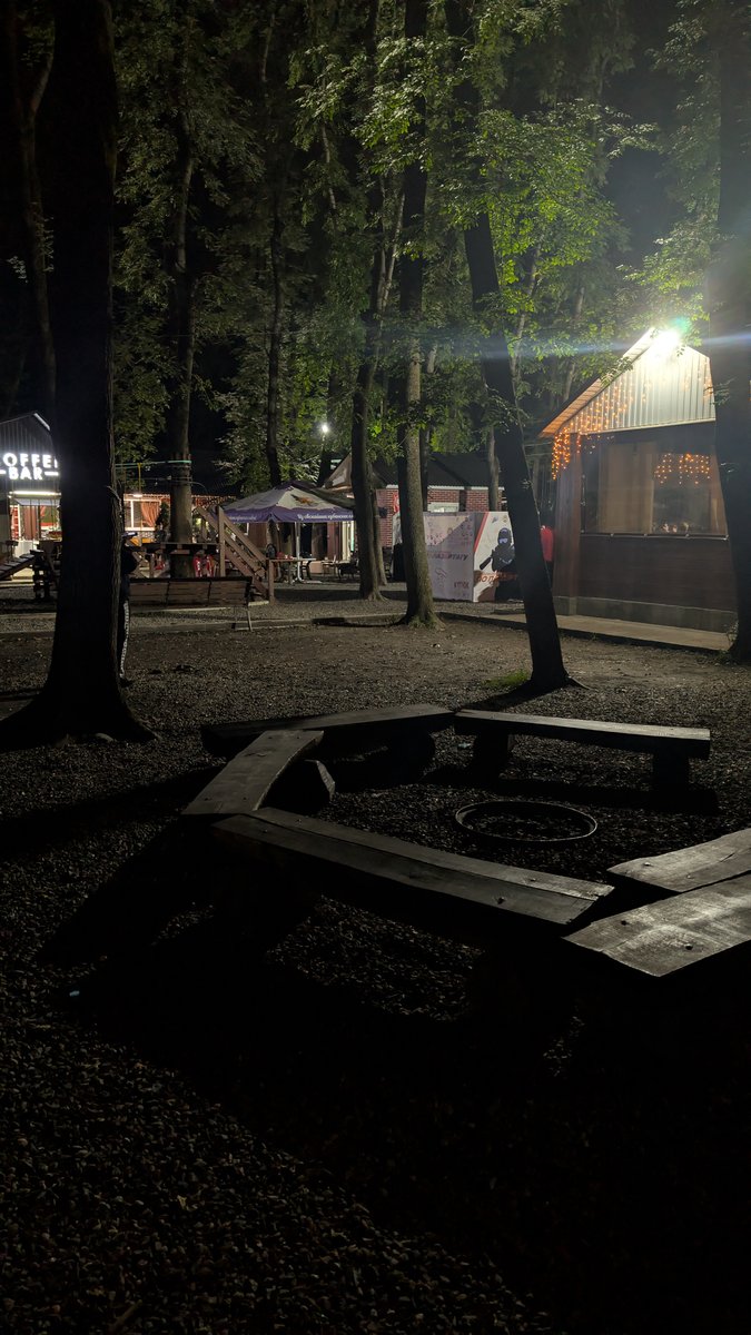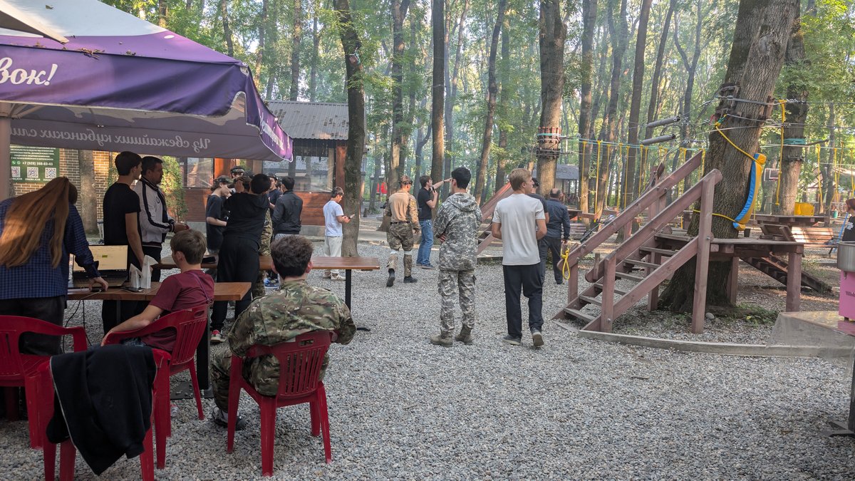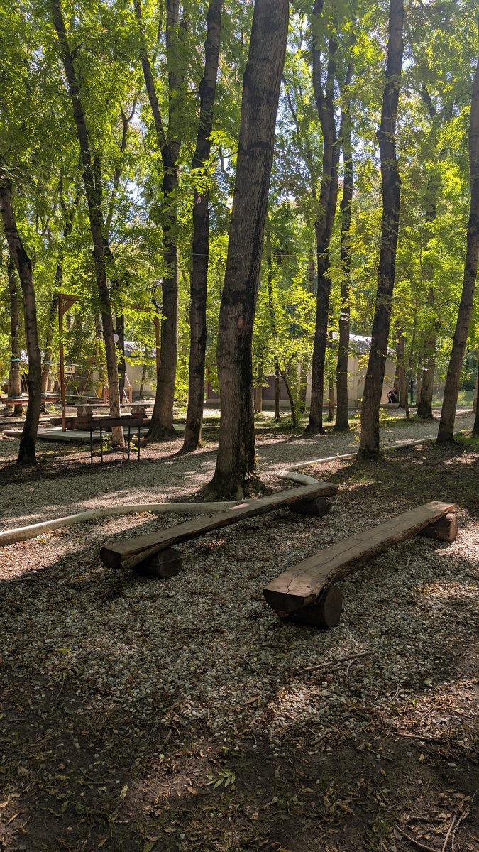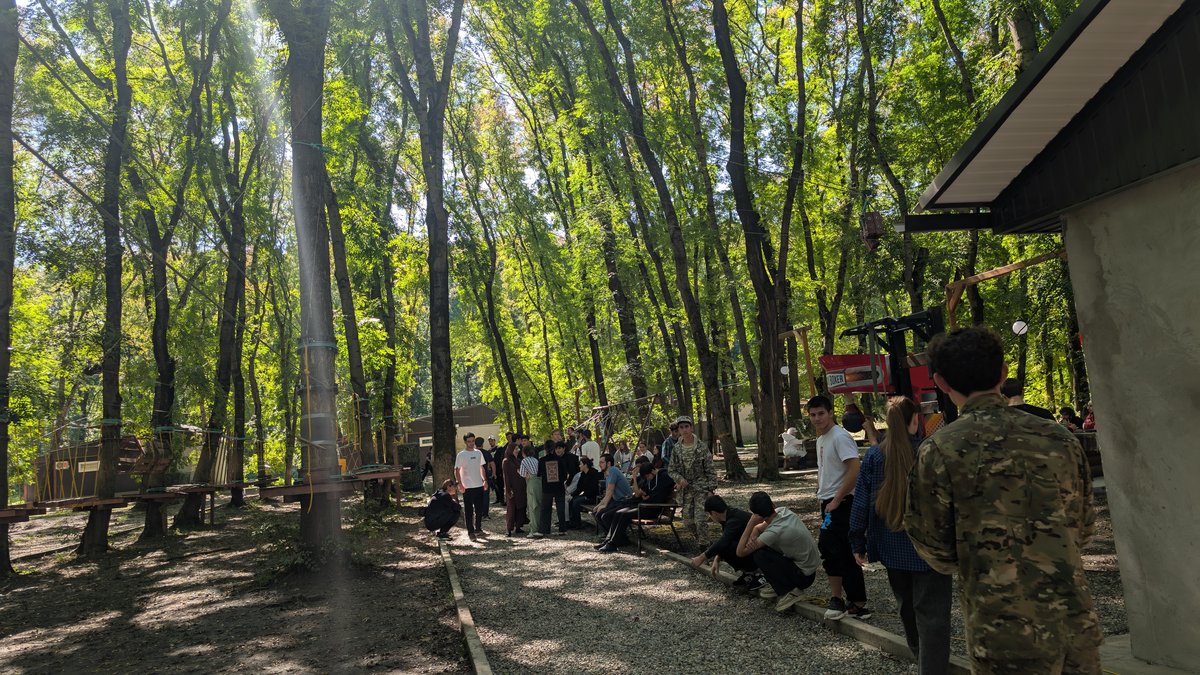 Веревочный парк, лазертаг, кинотеатр, спортивные площадки.